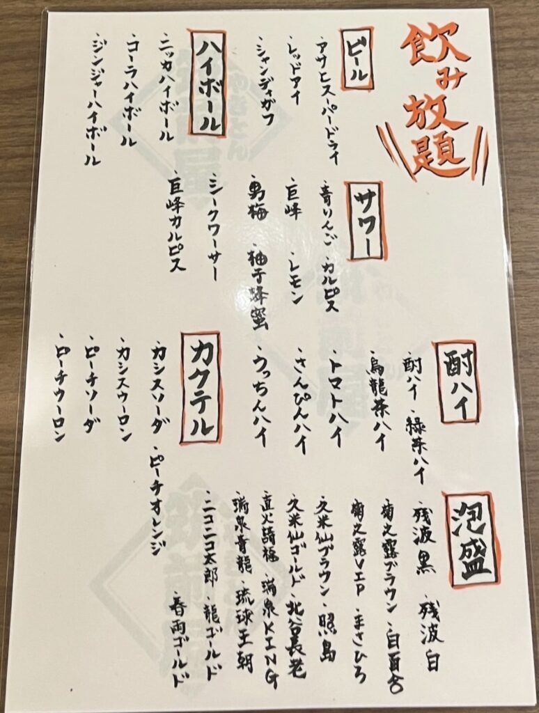 | 食べ放題 | なし |