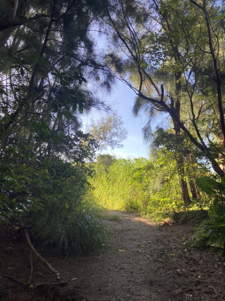 まず、ここに行くのは一苦労だよ。車じゃ行けないから、歩くしかないんだ。片道20分くらいかかるさぁ。でもね、歩きやすい靴履いて行けば大丈夫!ヒールとか履いて行ったら、途中で「あいやー!」ってなっちゃうからね(笑)