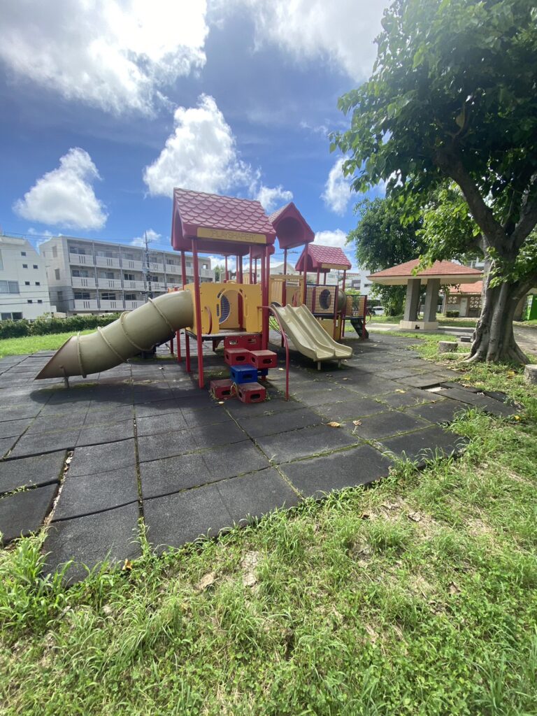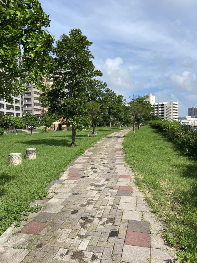 みなさん、那覇市おもろまちにある素敵な公園をご紹介しますね!ここは、崖の上に作られた眺めの良い公園なんです。高台にあるので、景色が本当に素晴らしいんですよ。